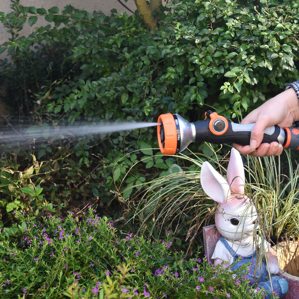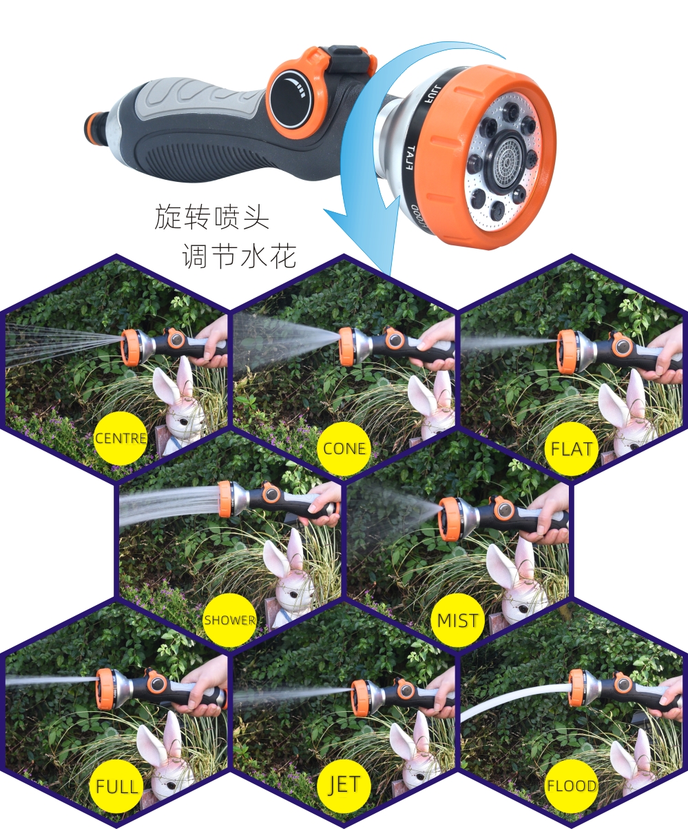 1,Plastic straight 8-way garden water spray gun with valve